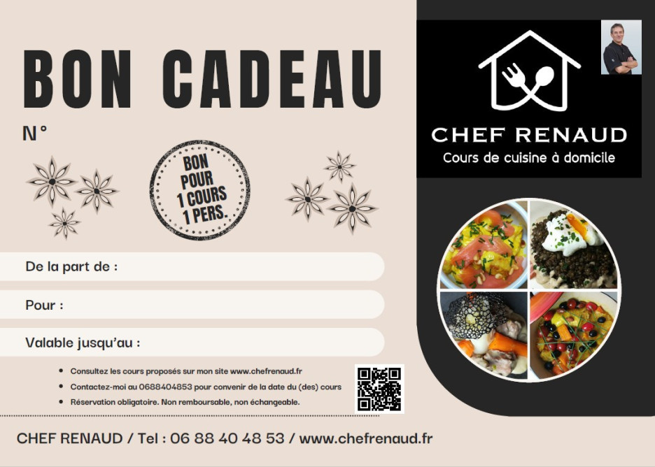 le Chef Renaud a souhaité mettre en place un système de bon cadeau, qui saura surprendre et ravir vos proches.